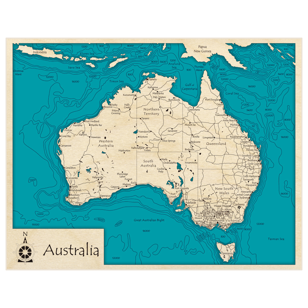 Australia 3D Custom Wood Map โ Lake Art LLC