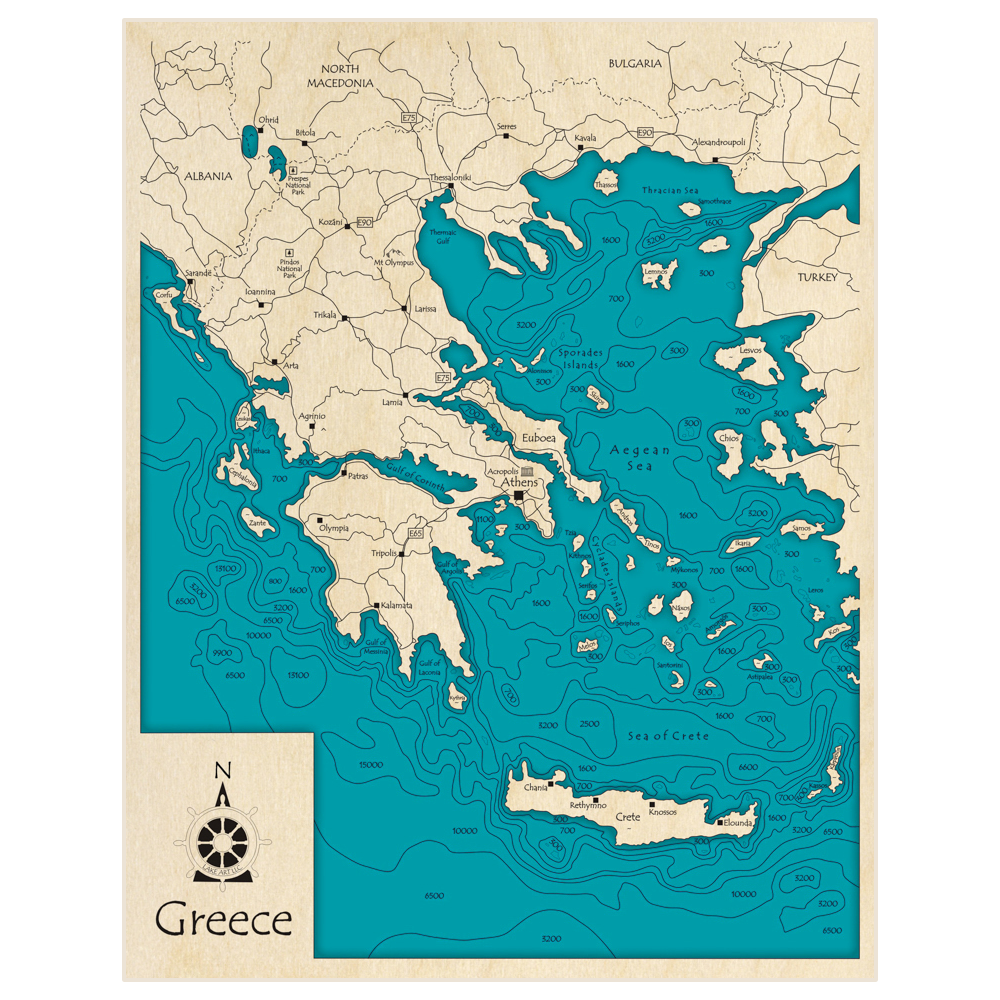 Greece 3D Custom Wood Map โ Lake Art LLC