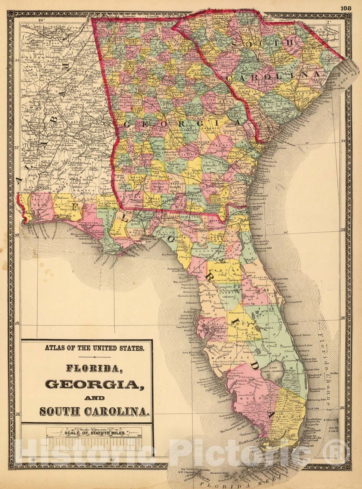 Historic Map : Florida, Georgia, and South Carolina., 1873